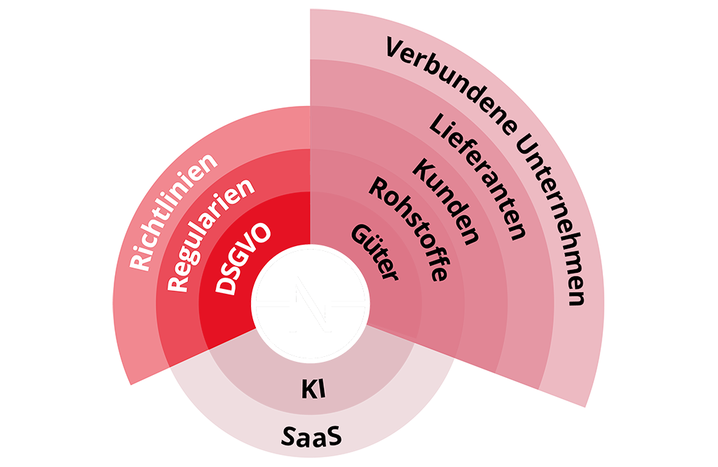 Aus den verschiedenen Industrieregularien, Datenschutzverordnungen und anderen Vorschriften entsteht eine komplexes Netz an Anforderungen, denen Unternehmen gerecht werden müssen. Und das gilt nicht nur für die Unternehmen selbst, sondern auch für verbundenen Firmen, deren Lieferant sie sind oder von denen sie wiederum Güter oder Rohstoffe beziehen.